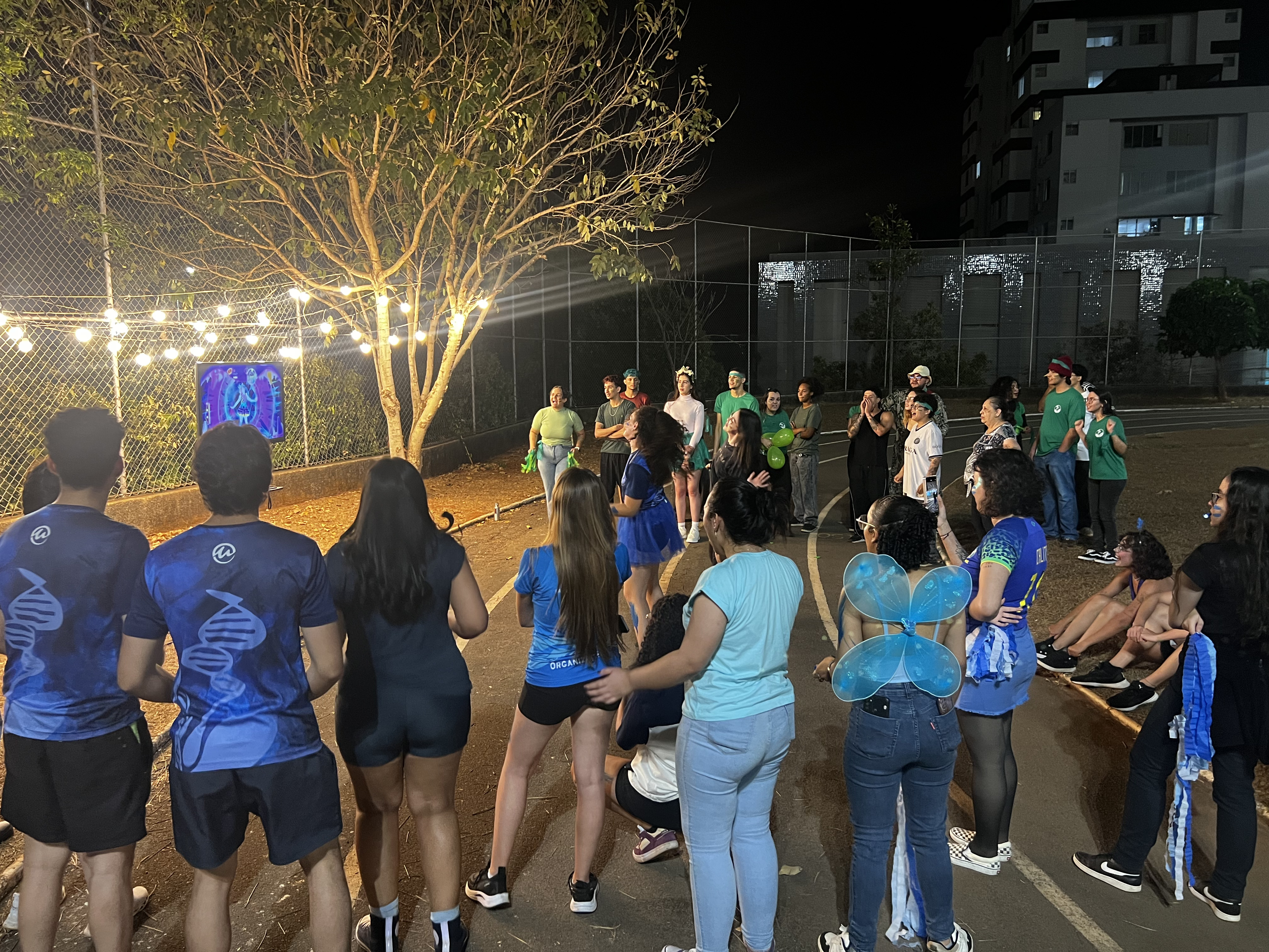 Divididos em duas equipes, verde e azul, os futuros biólogos se empenharam em cumprir diferentes tarefas valendo pontos. Entre elas, estavam: trazer mudas de orquídeas, encontrar pessoas com nomes de plantas e animais, usar adereços criativos na cabeça, produzir vídeos em homenagem à profissão, entre outras atividades que despertaram a criatividade e o espírito de equipe.
