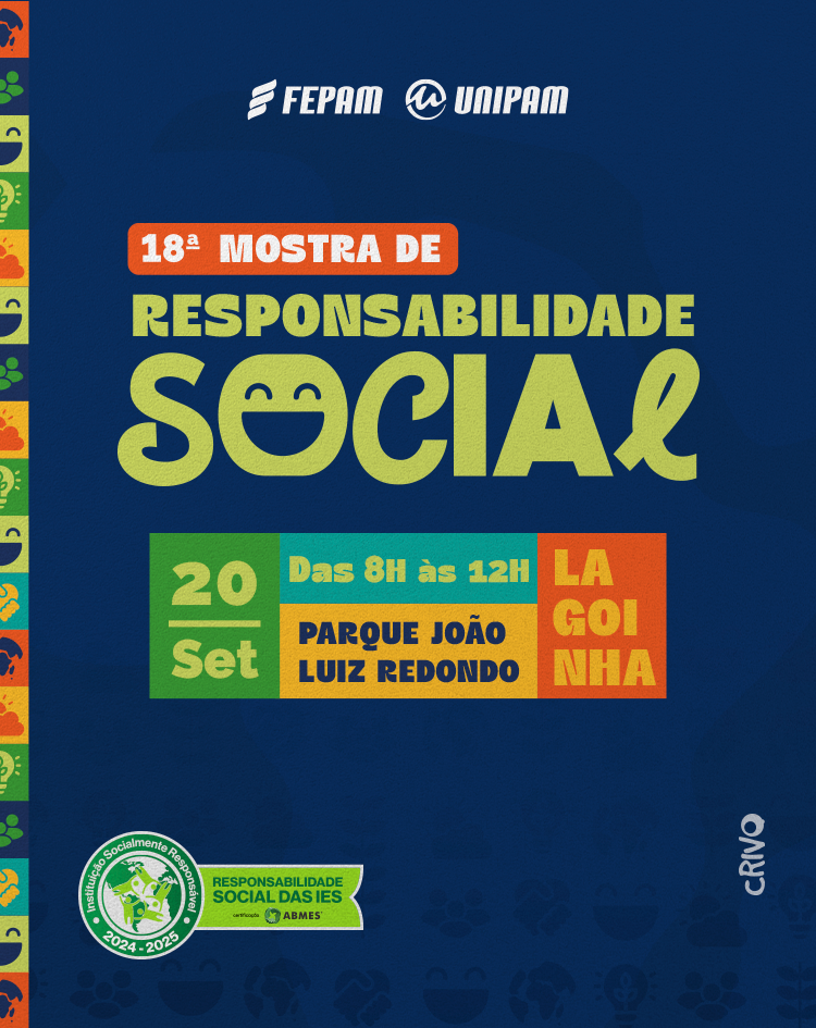 O Centro Universitário de Patos de Minas (UNIPAM) promove, no sábado (20), a partir das 8h, no Parque João Luiz Redondo (Lagoinha), a 18ª Mostra de Responsabilidade Social.