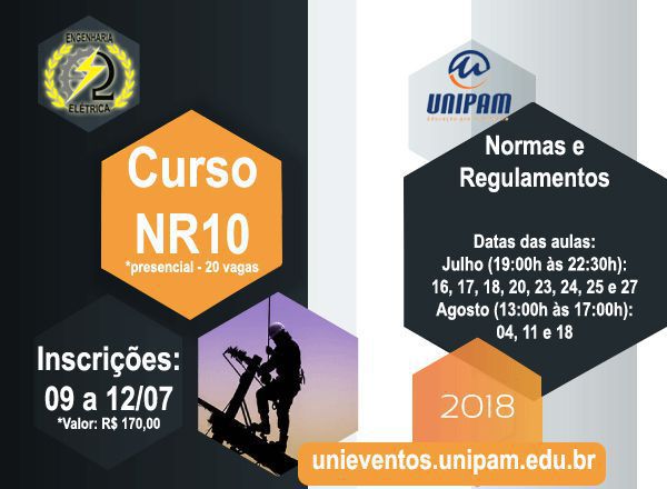 A coordenação do curso de Engenharia Elétrica do Centro Universitário de Patos de Minas (UNIPAM) promoverá nos meses de julho e agosto o curso “NR10”, voltado para alunos, professores e comunidade.