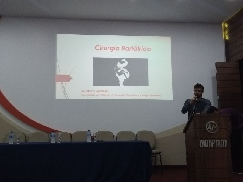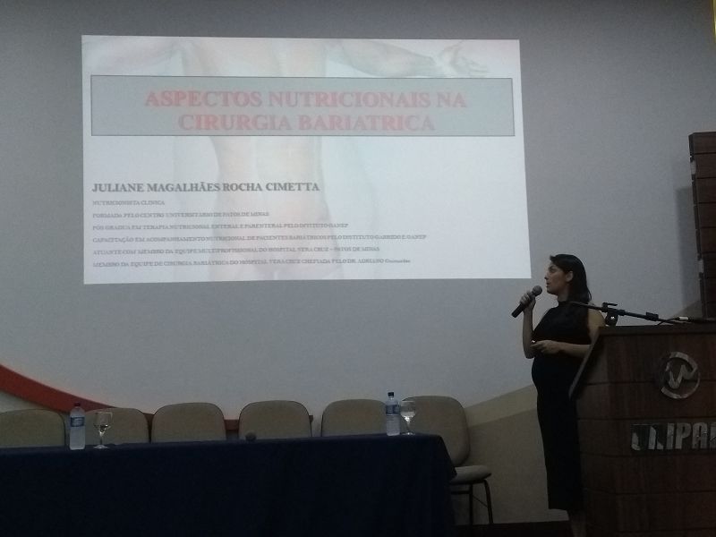 Alunos do 7º período do curso de Nutrição do Centro Universitário de Patos de Minas (UNIPAM), sob orientação da professora Aline Cardoso de Paiva, realizaram no dia 5 de abril, no auditório do bloco N, um ciclo de palestras sobre a atuação multiprofissional na cirurgia bariátrica.