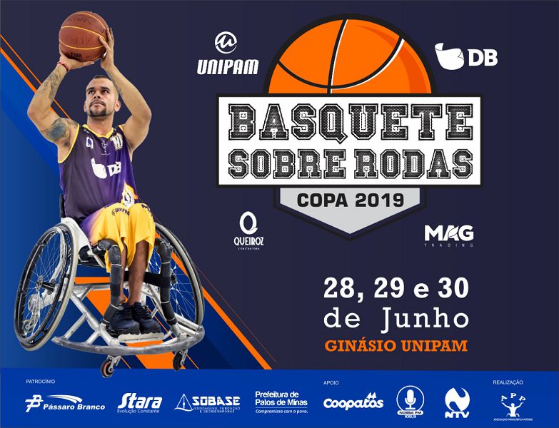 Será realizada nos dias 28, 29 e 30 de junho no Ginásio do Centro Universitário de Patos de Minas (UNIPAM), a Copa 2019 de Basquete sobre Rodas.